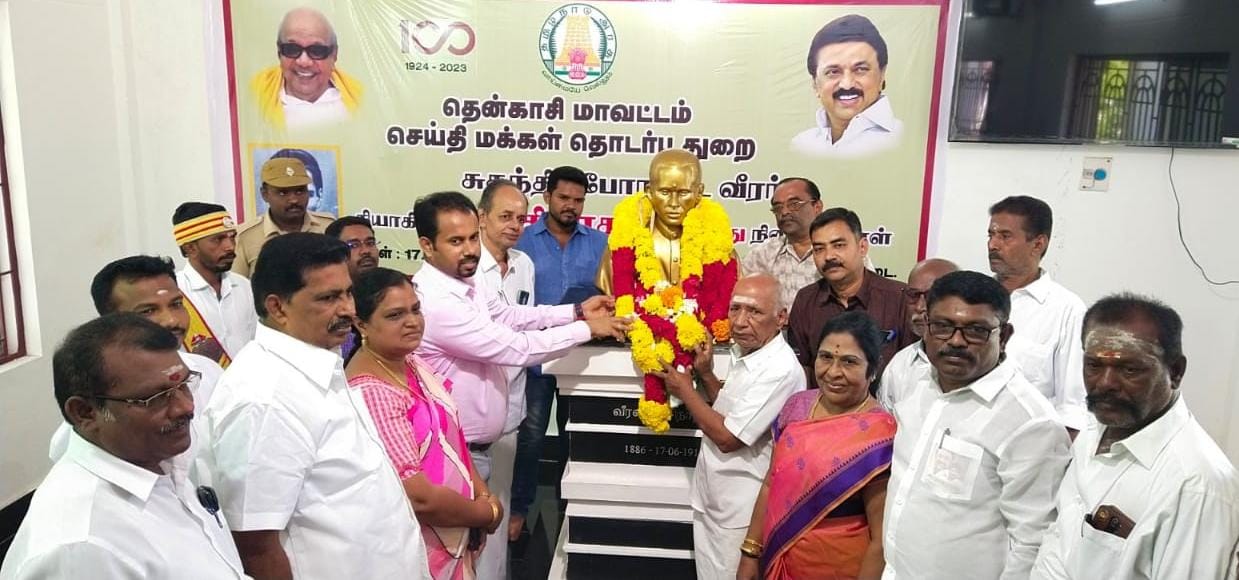 உள்ள வீர வாஞ்சிநாதன் மணிமண்டபத்தில் அன்னாரது திருவுருவ சிலைக்கு தென்காசி மாவட்ட ஆட்சித் தலைவர் ஏ.கே.கமல் கிஷோர், தலைமையில் செங்கோட்டை நகர மன்ற தலைவர் ராமலட்சுமி , நகர் மன்ற உறுப்பினர்கள் ரஹீம், மேரி, செய்தி மக்கள் தொடர்பு அலுவலர் இரா.இளவரசி செங்கோட்டை நூலகர்