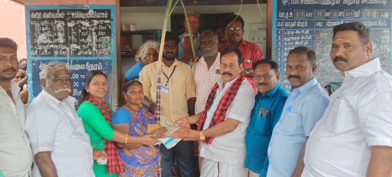 இதனை தொடர்ந்து துறையூர் மேற்கு ஒன்றிய (திமுக) செயலாளர் வீரபத்திரன் துறையூர் மேற்கு ஒன்றியங்களில் உள்ள முத்தியம்பாளையம், சிங்களாந்தபுரம், கண்ணனூர், பொன்னுசங்கம்பட்டி, கண்ணனூர் பாளையம், வீரமச்சான்பட்டி, கலிங்கமுடையான்பட்டி, வி.ஏ.சமுத்திரம் ஆகிய ஊராட்சிகளில் உள்ள அனைத்து ரேஷன் கடைகளிலும் தமிழக அரசின் ரூ3000/-ரொக்கம், வேஷ்டி சேலை,பச்சரிசி ஒரு கிலோ, சர்க்கரை ஒரு கிலோ அடங்கிய பொங்கல் பரிசு தொகுப்பை அரிசி குடும்ப அட்டைதாரர்களுக்கு வழங்கி துவக்கி வைத்தார்.