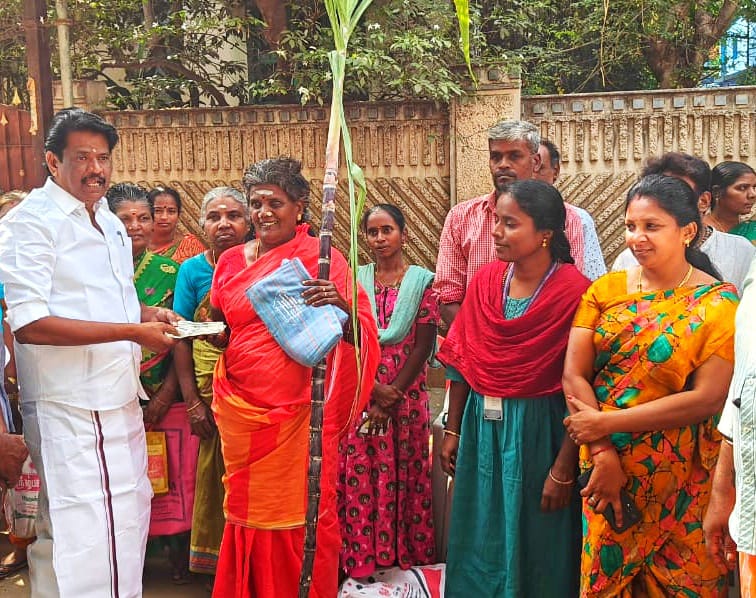 பொங்கல்திருநாளை சிறப்பாகக் கொண்டாட 2 கோடியே 23 லட்சத்து 91,710 அரிசி குடும்ப அட்டைதாரர்களுக்கு பொங்கல் பரிசுத் தொகுப்பாக ஒரு கிலோ பச்சரிசி, ஒரு கிலோ சர்க்கரை, ஒரு முழு கரும்பு ஆகியவற்றுடன் ரூ.3,000 ரொக்க பணத்துடன் சேர்த்து வழங்கும் பணியை சென்னைஆலந்தூரில் முதல்வர் ஸ்டாலின் துவக்கி வைத்தார்.