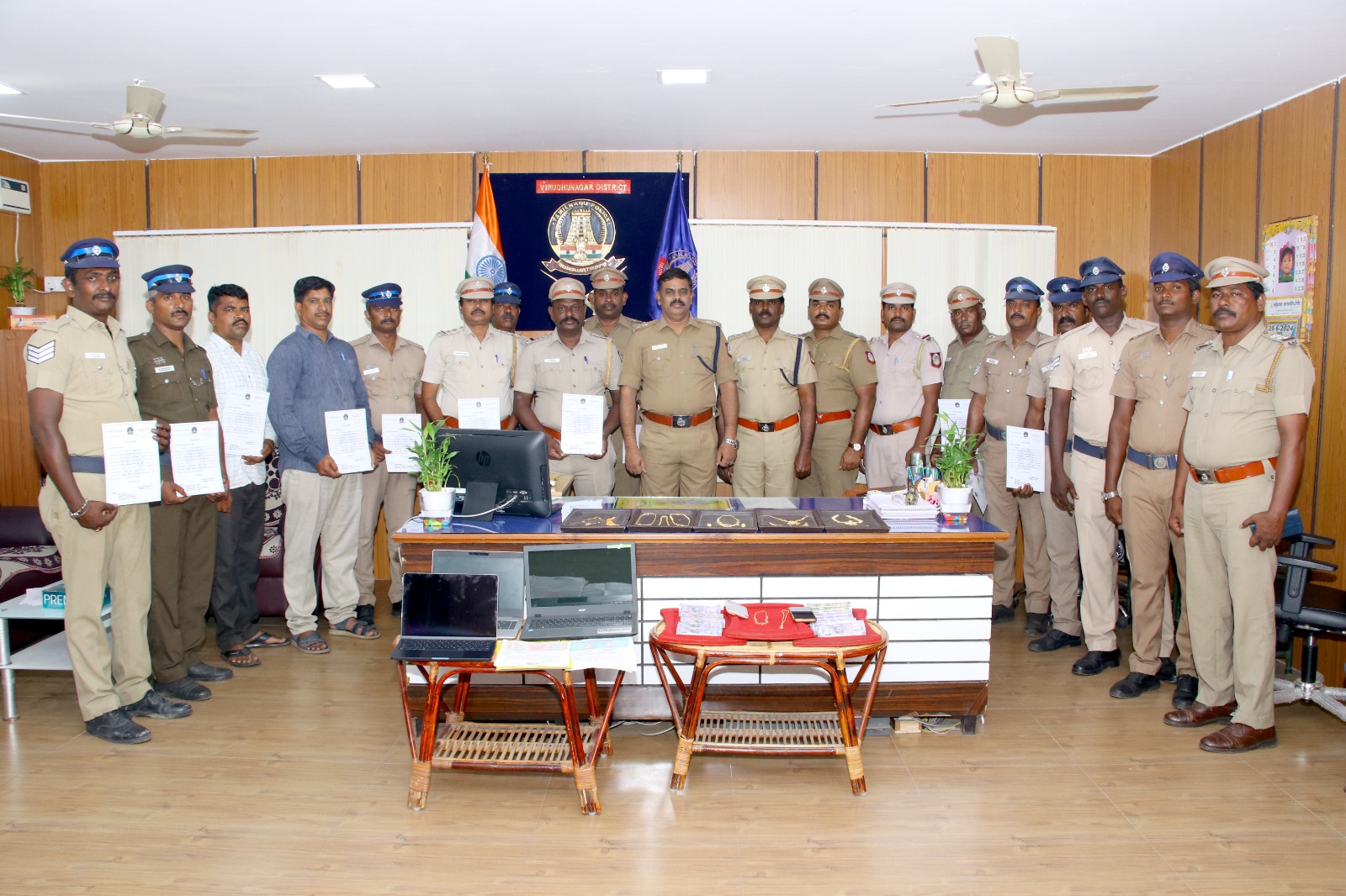 மேற்படி சொத்து ஆவணமும் பறிமுதல் செய்யப்பட்டுள்ளது. தலைமறைவாக உள்ள மூர்த்தி உள்ளிட்ட ஐந்து எதிரிகளை தனிப்படையினர் தேடி வருகின்றனர். மேற்படி வழக்குகளை கண்டறிய சிறப்பாக புலன் விசாரணை செய்து குற்றவாளிகளை கைது செய்து கொள்ளையடிக்கப்பட்ட பொருட்களையும் பறிமுதல் நடவடிக்கை மேற்கொண்ட ராஜபாளையம் டிஎஸ்பி அழகேசன் இன்ஸ்பெக்டர்கள் முரளிதரன் . பவுல்ஏசுதாசன் எஸ்ஐகள் சக்திகுமார் (குற்றப்பிரிவு கமலக்கண்ணன் . தமிழலகன் (சைபர்கிரைம்) இதில் முக்கிய பங்குவகித்த குற்றப்பிறிவு காவலர் காளிதாஸ் மற்றும் தனிப்படை காவல்துறை அதிகாரிகளை நேரில் அழைத்து காவல் கண்காணிப்பாளர் பரோஸ்கான் அப்துல்லா சான்றிதழ் மற்றும் வெகுமதி வழங்கி பாராட்டினார் என்பது குறிப்பிடத்தக்கது