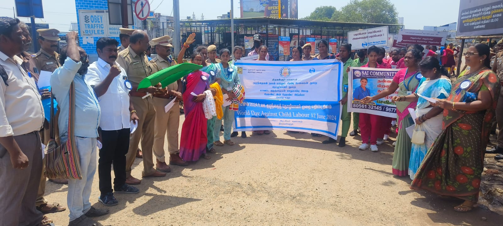 குழந்தை தொழிலாளர் முறை எதிர்ப்பு தினத்தை முன்னிட்டு செங்குன்றத்தில் ஹேன்ட் இன் ஹேன்ட் இந்தியா அமைப்பின் சார்பில் செங்குன்றம் கூட்டு சாலையில் இருந்து மார்கெட் காமராஜர் சிலை வரை விழிப்புணர்வு பேரணி நடைபெற்றது.