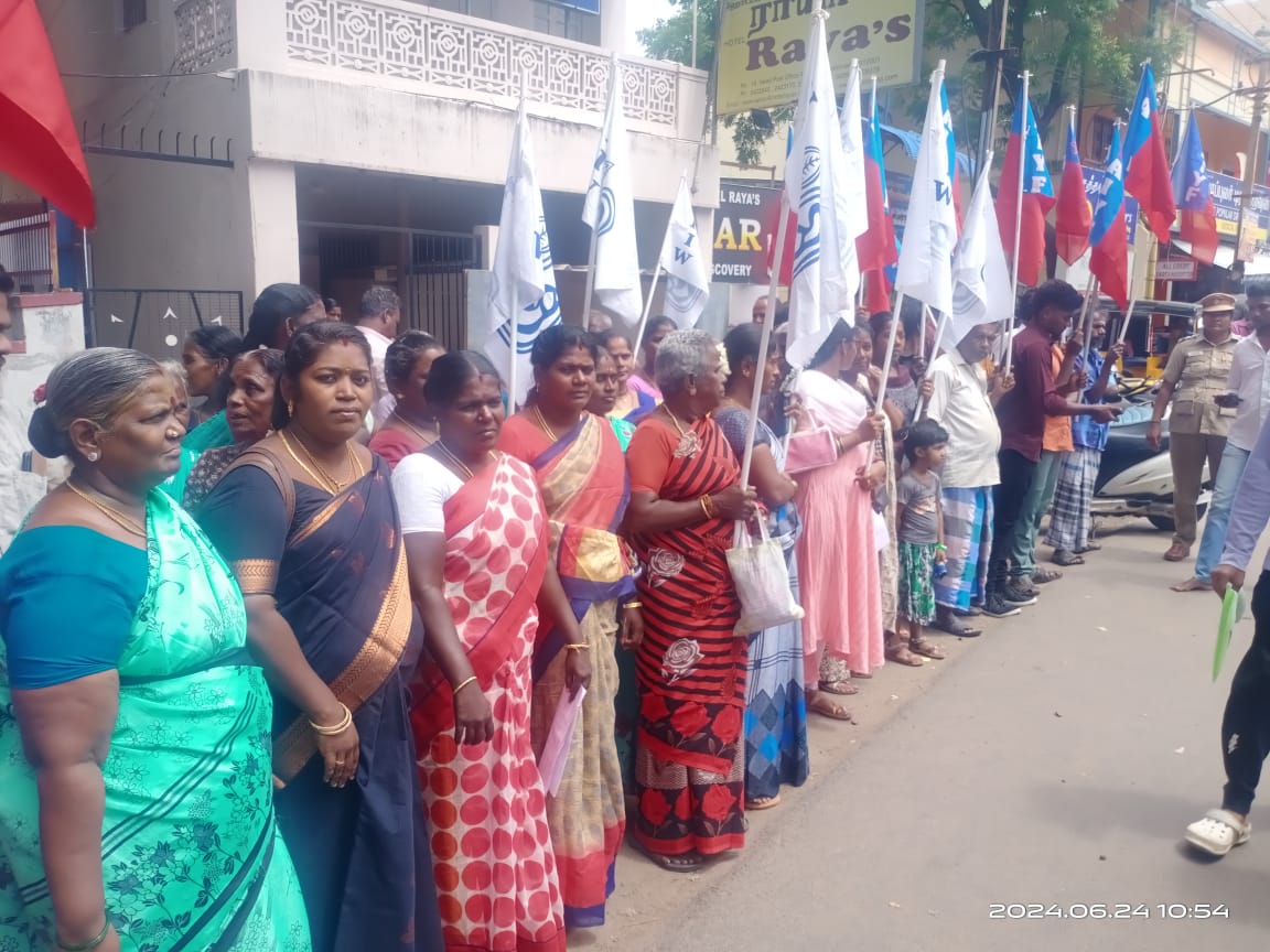 இந்திய மாதர் தேசிய சம்மேளனம் மற்றும் அனைத்திந்திய இளைஞர் பெருமன்றம் சார்பில் பெருந்திரள் ஆர்ப்பாட்டம் நடைபெற்றது.