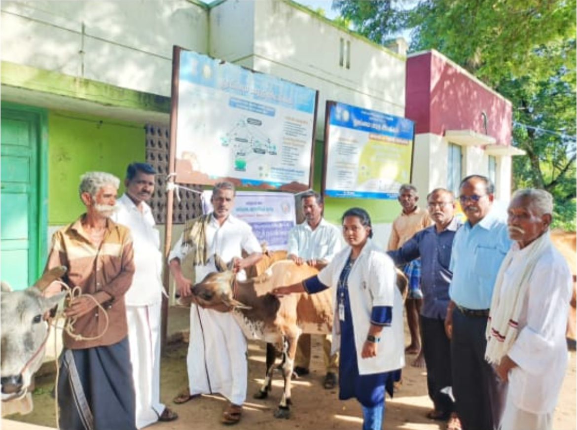 முகாமை திருவாரூர் கோட்ட உதவி இயக்குனர் மருத்துவர் ஈஸ்வரன் மற்றும் திருவாரூர் கால்நடை நோய் புலனாய்வு துறை உதவி இயக்குனர் மருத்துவர் சுப்பிரமணி ஆகியோர் துவக்கி வைத்து ஆலோசனை வழங்கினார். கால்நடை உதவி மருத்துவர் கலையரசி மற்றும் கால்நடை பராமரிப்பு உதவியாளர் மாரியப்பன் ஆகியோர் கோமாரி நோய் தடுப்பூசி செலுத்தினர்.