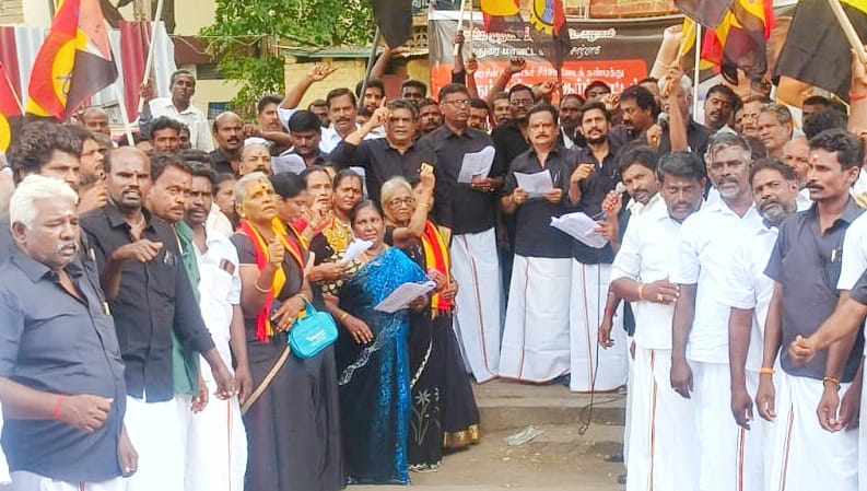 வேண்டும் என வலியுறுத்தி மதுரை தேசிய முற்போக்கு திராவிடக் கழகத்தின் மதுரை ஒருங்கிணைந்த மாவட்டம் சார்பில் மாநகர் மாநில உயர்மட்ட குழு உறுப்பினர் பாலன் ,மாநில தொழிற்சங்க பேரவை செயலாளர் காளிராஜன், மாநகர் வடக்கு மாவட்ட செயலாளர் பாலச்சந்திரன், மாநகர் தெற்கு மாவட்ட கழக செயலாளர் மணிகண்டன்,புறநகர் தெற்கு மாவட்ட தலைவர் செயலாளர் கணபதி ,புறநகர் வடக்கு மாவட்ட பொறுப்பாளர் மணிமுத்து ஆகியோர் தலைமையில் தே.மு.தி.க. வினர் கண்டன ஆர்ப்பாட்டத் தில் ஈடுபட்டனர்.
