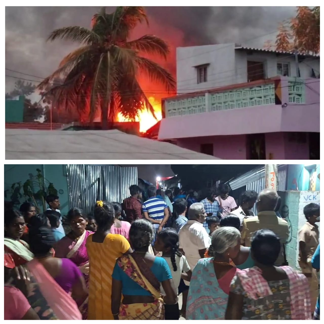 இந்த தீ விபத்தில் வீட்டிற்குள் இருந்த பீரோ கிரைண்டர் கட்டில் உட்பட ஏழு பவுன் நகை பத்தாயிரம் ரூபாய் ரொக்கம் உள்ளிட்ட அனைத்து பொருட்களும் தீயில் எரிந்து விட்டது.