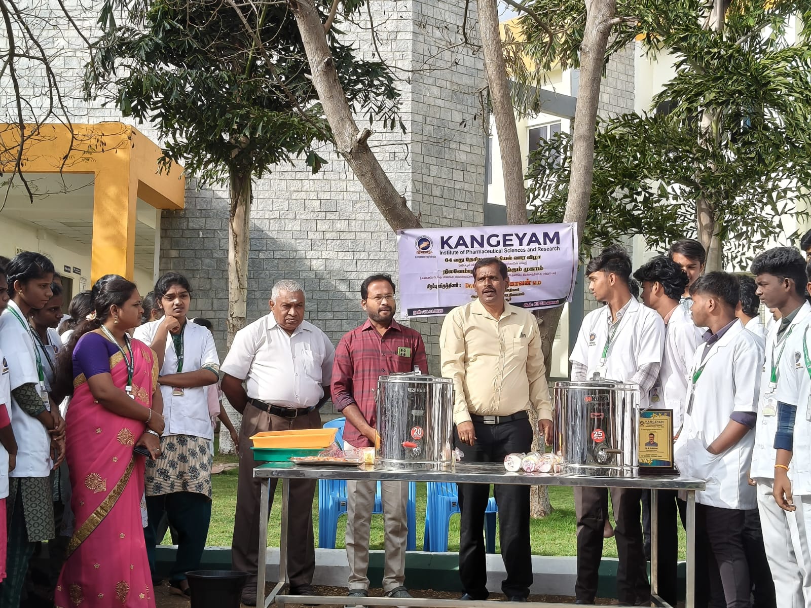 திருப்பூர் மாவட்டம்,காங்கேயம் தாலுக்கா, நத்தக்காடையூரில் உள்ள காங்கேயம் மருந்தியல் மற்றும் ஆராய்ச்சிக் கல்லூரியின் 64 வது தேசிய மருந்தியல் வார விழாவின் தொடர்ச்சியாக ஜனவரி 9-ம் தேதி அன்று நிலவேம்பு குடிநீர் வழங்கும் முகாம் காங்கேயம் கல்லூரிகளின் வளாகத்தில் நடைபெற்றது.