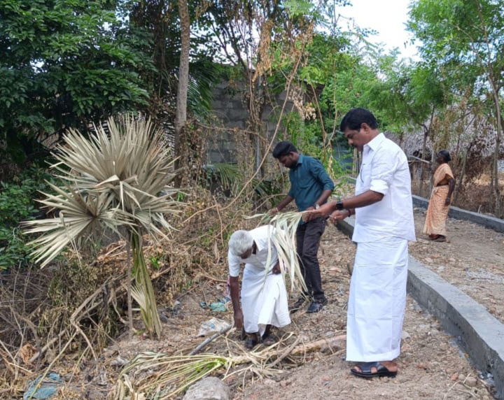 நாகப்பட்டினம் மாவட்டம், தலைஞாயிறு ஒன்றியம், நீர்முளை ஊராட்சியில் சிமெண்ட் சாலை அமைக்கும் பணிக்கு இடையூறாக இருந்த ஏழு பனை மரங்கள் அகற்றம்.