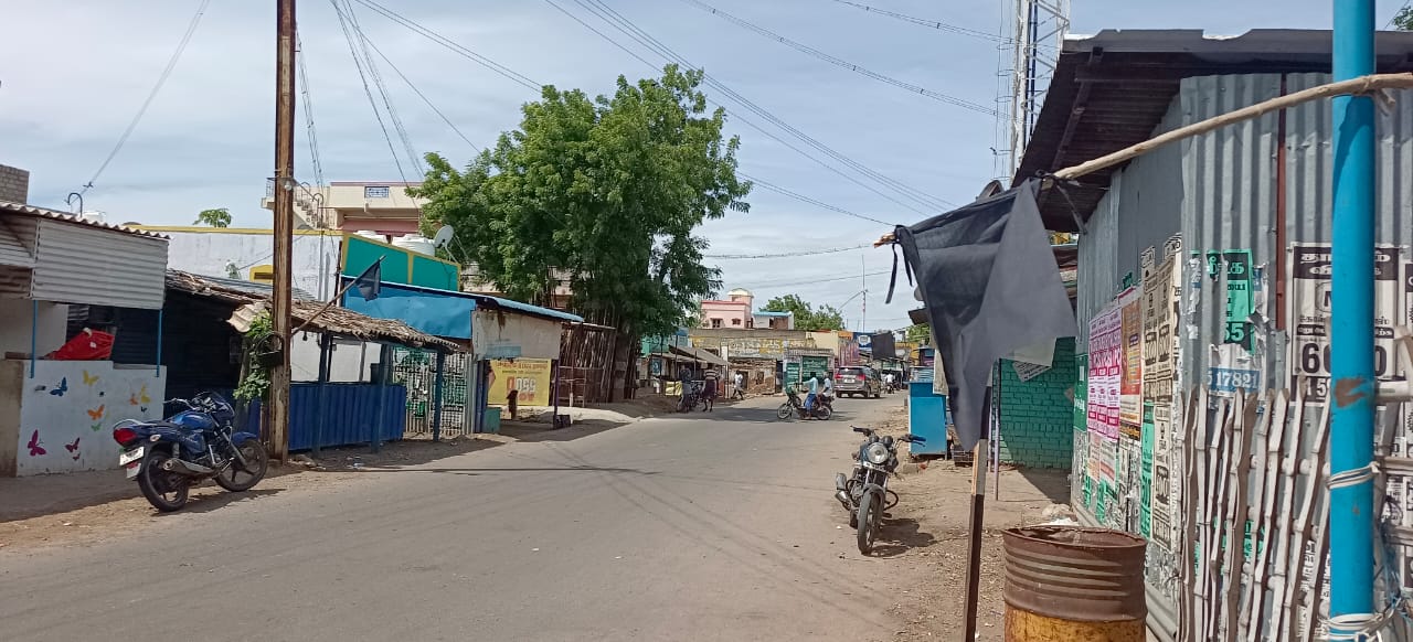கோவில்பட்டி அருகே கல்குவாரி அமைக்க எதிர்ப்பு – கடைகளை அடைத்து கருப்பு கொடி ஏற்றி பொதுமக்கள் மற்றும் வியாபாரிகள் போராட்டம்