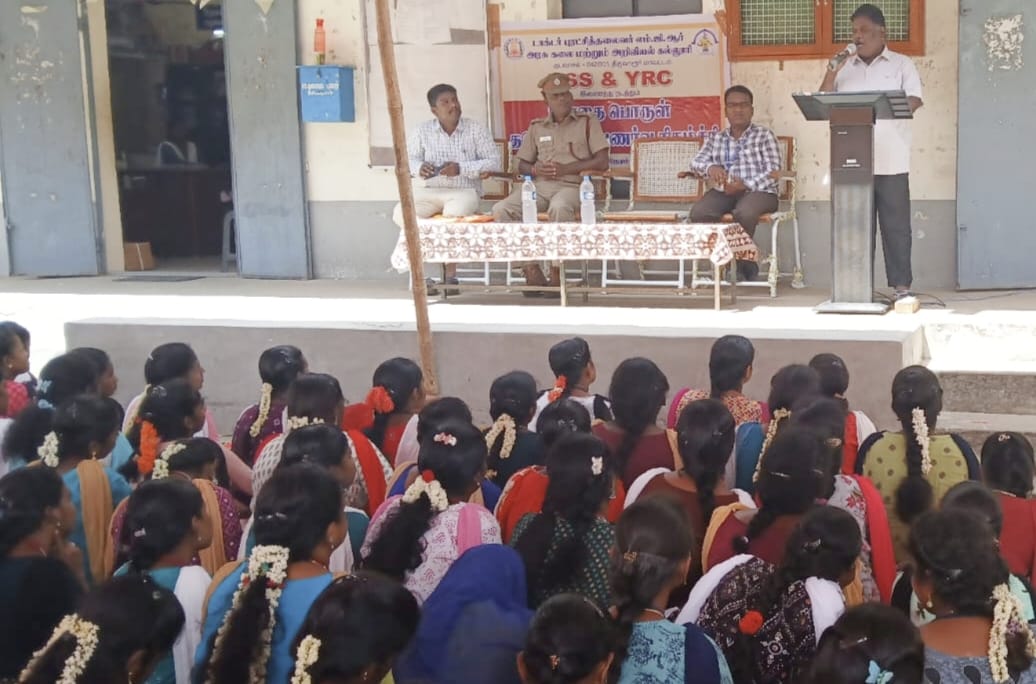 திருவாரூர் மாவட்டம் குடவாசல் எம்ஜிஆர் அரசு கலை மற்றும் அறிவியல் கல்லூரியில் நாட்டு நலப்பணித்திட்டம் மற்றும் இளம் செஞ்சிலுவை சங்கம் சார்பில் போதை பொருள் தடுப்பு விழிப்புணர்வு நிகழ்ச்சி கல்லூரி வளாகத்தில் நடைபெற்றது.