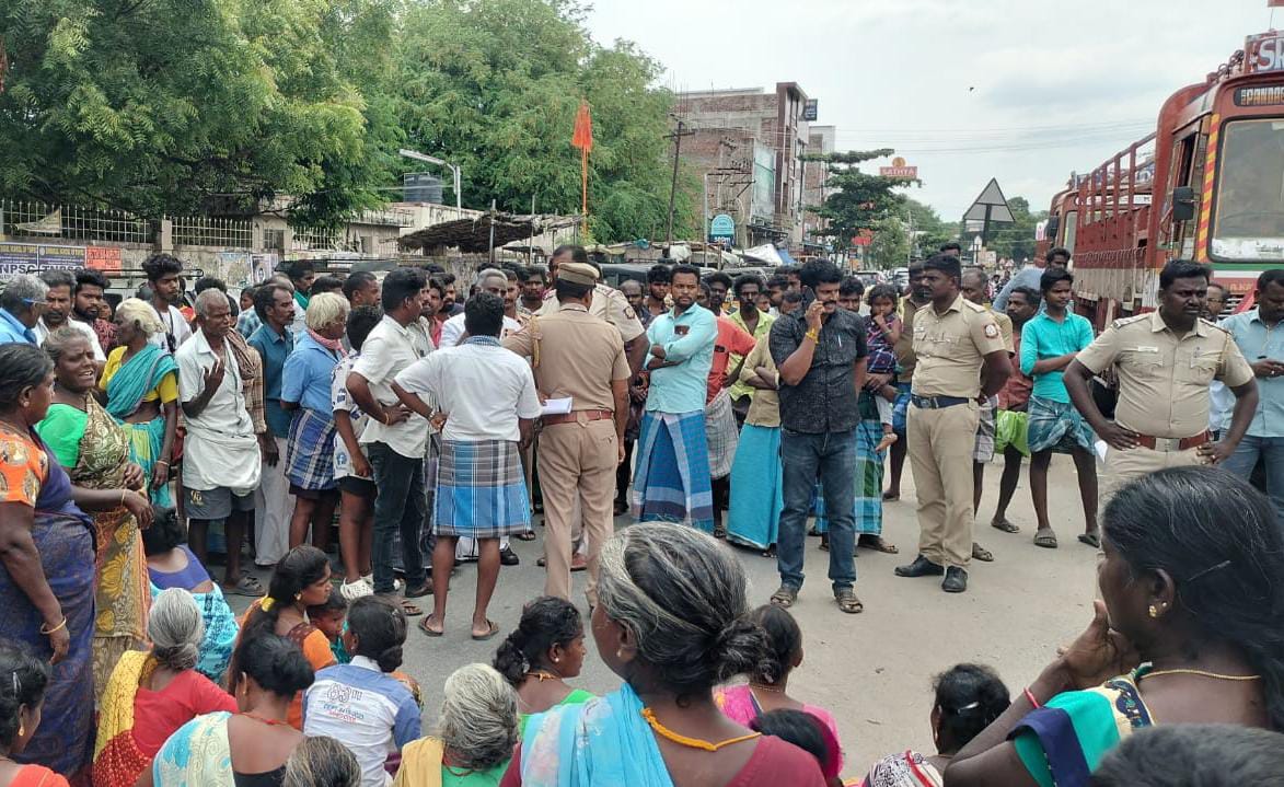 திண்டுக்கல் மாவட்டம் நத்தம் அருகே செந்துறை அடைக்கனூர் பகுதியில் நேற்று விபத்தில் இறந்த கொண்டையம்பட்டியை சேர்ந்த வாகன ஓட்டுநர் கருப்பசாமி உடலை வாங்க மறுத்து உறவினர்கள், அப்பகுதி பொதுமக்கள் அரசு மருத்துவமனை முன்பு சாலை மறியல் – இறந்தவருக்கு நிவாரணம் வழங்க கோரியும், இறந்தவரை குற்றவாளி என காவல்துறையினரின் எப்-ஐ -ஆரில் சேர்த்ததை கண்டித்தும், மறியலில் ஈடுபட்டவர்கள் கோஷமிட்டனர்.