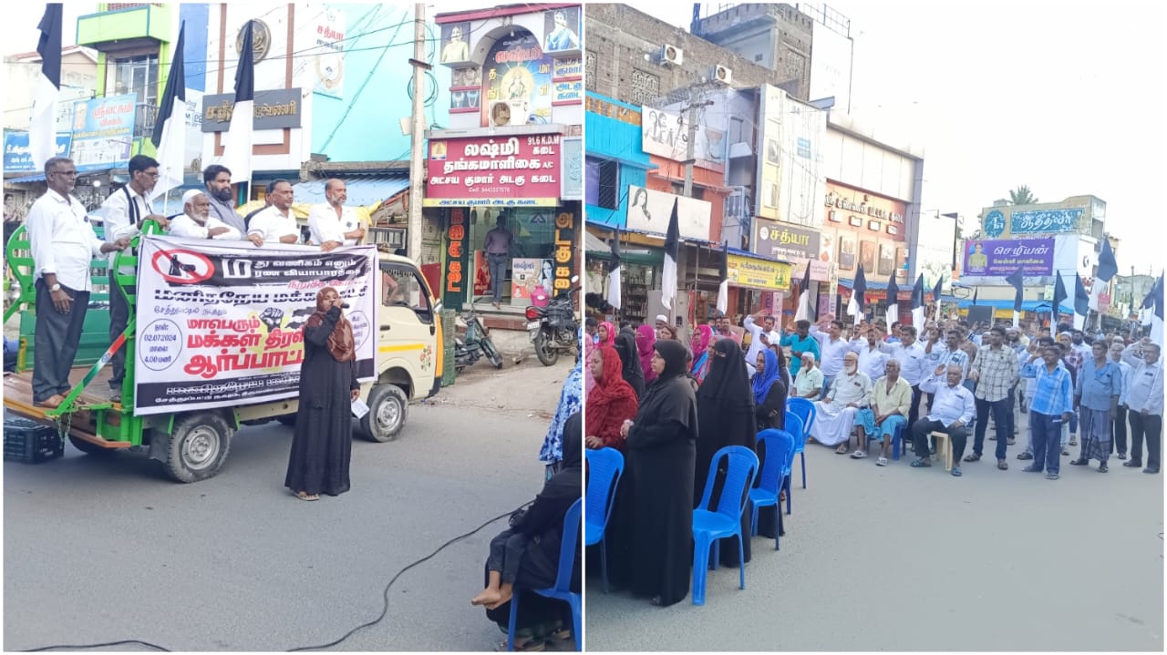 ஆர்ப்பாட்டத்திற்கு மனிதநேய மக்கள் கட்சி வடக்கு மாவட்ட தலைவர் ஜமால், தலைமை தாங்கினார். மனிதநேய மக்கள் கட்சி நகர தலைவர் அக்பர், செயலாளர் முபாரக், ஆகியோர் முன்னிலை வகித்தனர். அனைவரையும் பொருளாளர் இப்ராஹிம், வரவேற்றார்.