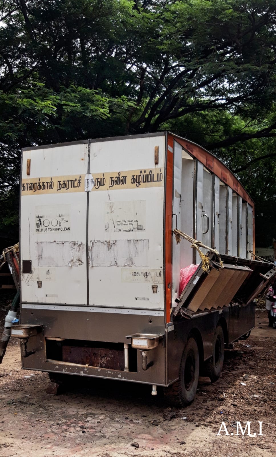 சுவச்ச பாரத் அபியான் (Swachh Bharat Abhiyan) திட்டத்தின் கீழ் சில ஆண்டுகளுக்கு முன்பு நடமாடும் கழிப்பறை வாகனம் ஒன்று சுற்றுலா துறை மூலம் காரைக்கால் நகராட்சிக்கு வந்தது!