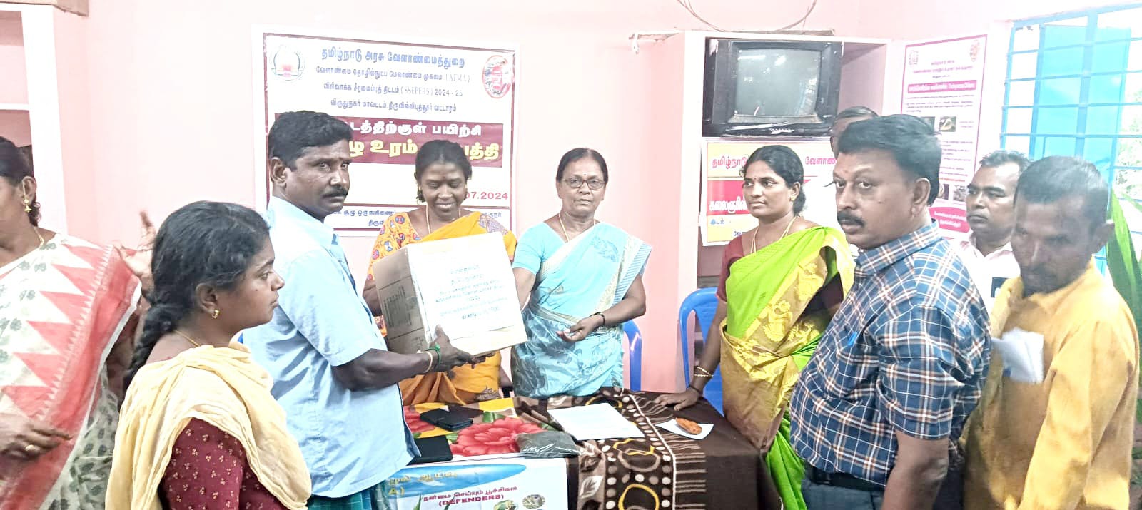 மேலும் இப் பயிற்சியில் வேளாண்மை இணை இயக்குனர் விஜயா, கலைஞரின் அனைத்து கிராமம் ஒருங்கிணைந்த வேளாண்மை வளர்ச்சி திட்டத்தின் கீழ் ஒருங்கிணைந்த பயிர் மேலாண்மைக்கு இடுபொருள்கள் 50%மானியத்தில் விவசாயிகளுக்கு வழங்கப்பட்டன.