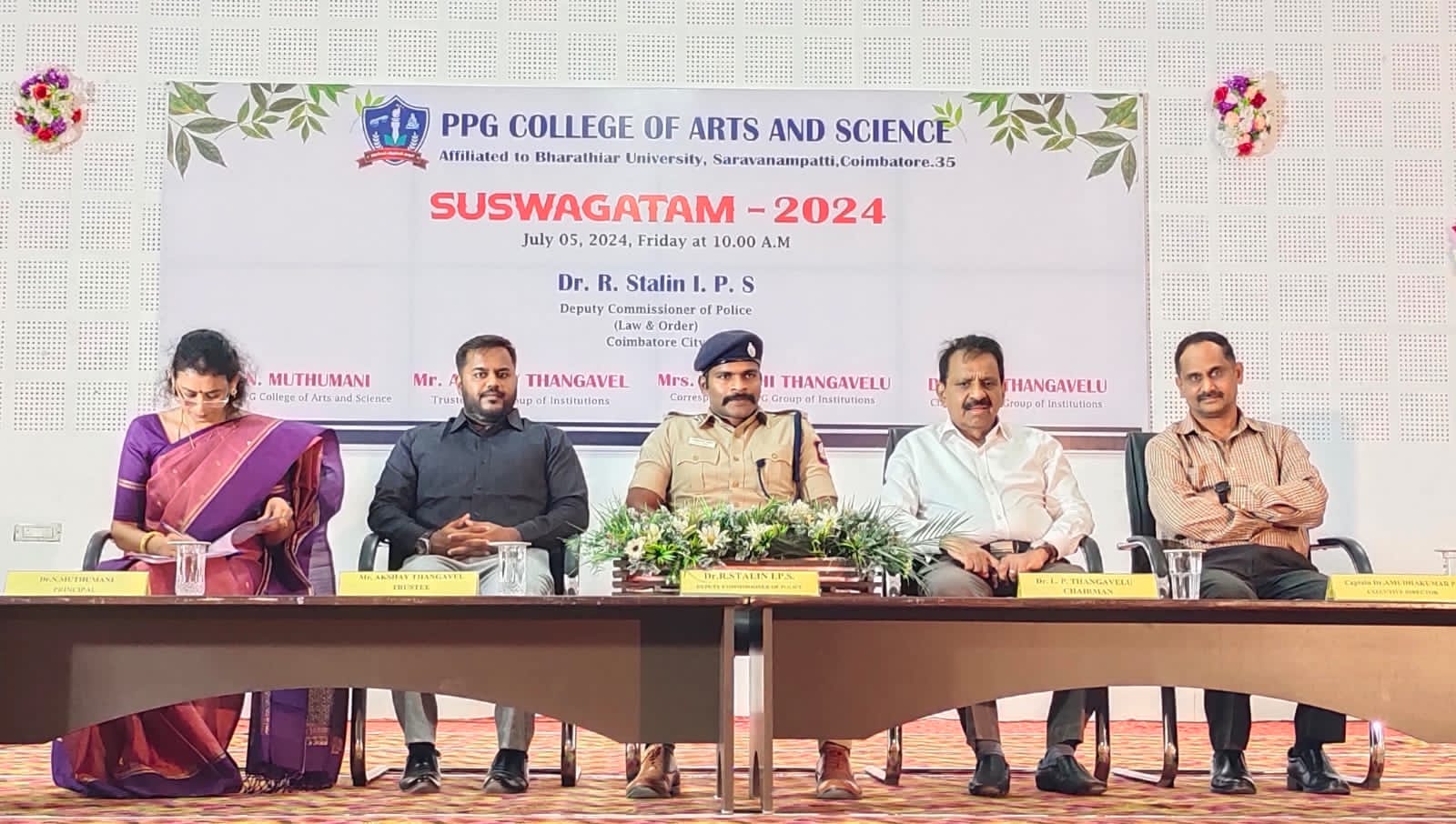 கோவை சரவணம்பட்டி பிபிஜி கலை மற்றும் அறிவியல் கல்லூரியில் 2024 ஆம் கல்லூரி வாழ்க்கையை துவங்க போகும் முதலாம் ஆண்டு மாணவ,மாணவிகளை வரவேற்கும் விதமாக சுஸ்வாகதம் 2024 எனும் மாணவர்களுக்கான வரவேற்பு விழா கல்லூரி அரங்கில் நடைபெற்றது..
