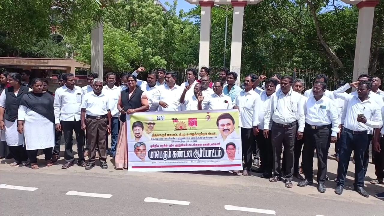 மூன்று குற்றவியல் சட்டங்களை முன்பு இருந்தது போலவே ஆங்கில மொழியில் தர கோரியும், மூன்று குற்றவியல் சட்டங்களையும் அந்தந்த மாநில மொழிகளிலேயே நடைமுறைப்படுத்திடவேண்டும் என ஒன்றிய அரசை வலியுறுத்தியும், மூன்று குற்றவியல் சட்டங்களை வாபஸ்பெற கோரியும் , வலியுறுத்தியும் ஆர்ப்பாட்டம் நடைபெற்றது ,