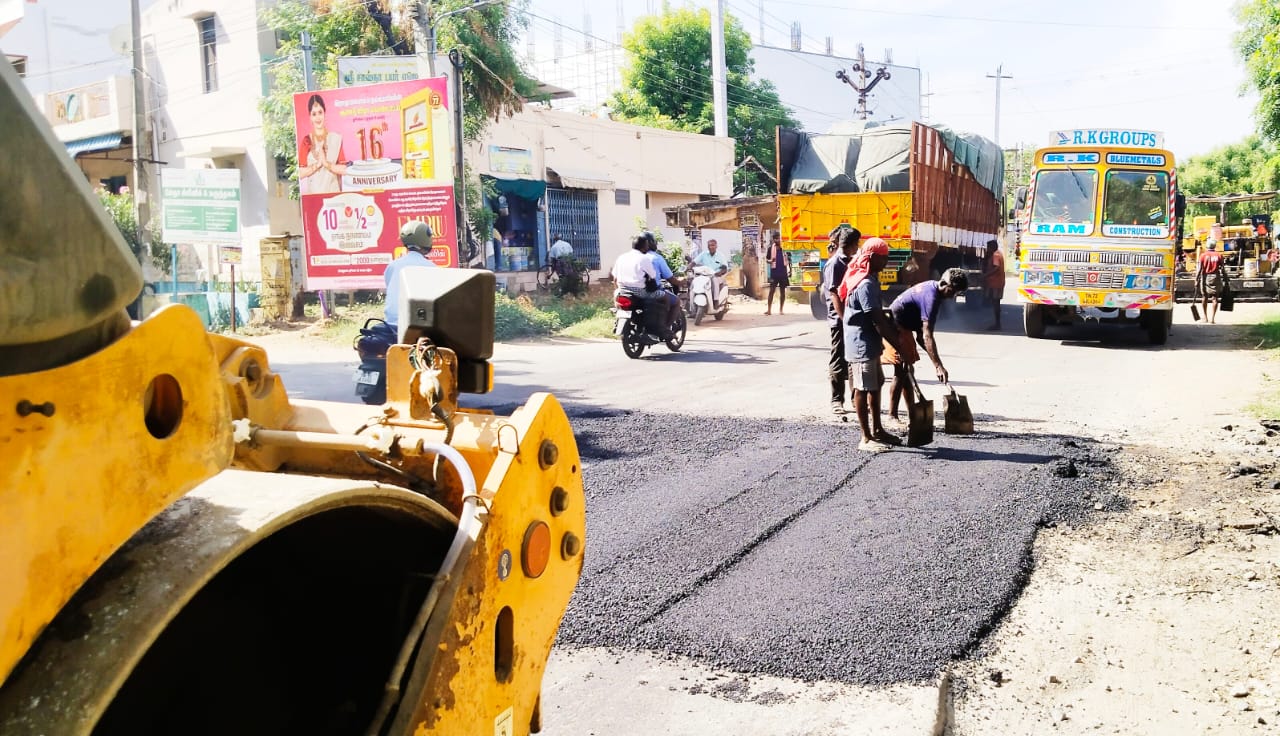 விருதுநகர் மாவட்டம் ராஜபாளையம் நகராட்சி பகுதியில் தாமிரபரணி கூட்டு குடிநீர் திட்டம், பாதாள சாக்கடை திட்டம் உள்பட பல்வேறு பணிகளுக்காக நகராட்சி சார்பில் சாலைகள் தோண்டப்பட்டு குண்டும் குழியுமாக காணப்பட்டது.