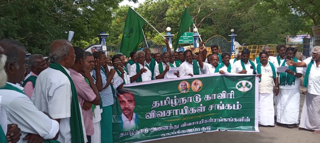 திருவாரூர் மாவட்ட ஆட்சியர் அலுவலகத்தில் அனைத்து காவிரி விவசாய சங்கங்களின் ஒருங்கிணைப்பாளர் பி ஆர் பாண்டியன் தலைமையில்100 க்கும் மேற்பட்ட விவசாயிகள் மாவட்ட ஆட்சியரை கண்டித்து கோஷங்கள் இட்டு கண்டன ஆர்ப்பாட்டத்தில் ஈடுபட்டார்கள்.