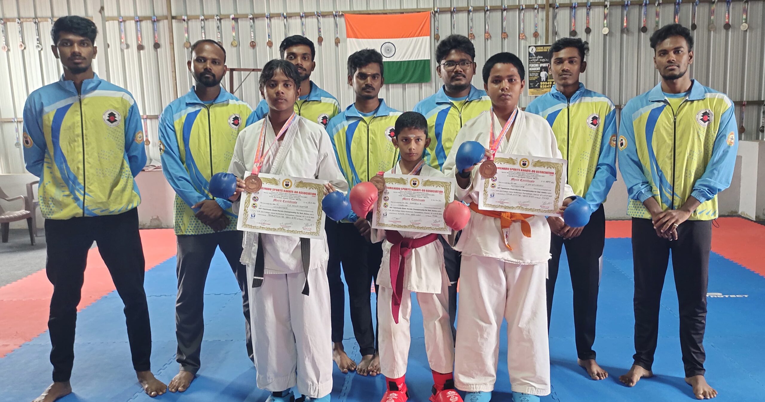 சென்னையில் நடைபெற்ற மாநில அளவிலான கராத்தே போட்டியில் மை கராத்தே இண்டர்நேஷனல் பயிற்சி மையத்தை சேர்ந்த மாணவ,மாணவிகள் மூன்று வெண்கல பதக்கங்கள் பெற்று தேசிய அளவிலான போட்டிக்கு தேர்வாகி உள்ளனர்..