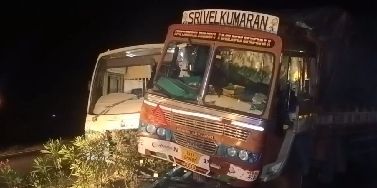 திருப்பூர் மாவட்டம் பல்லடத்தை எடுத்த சாலைப்புதூர் பகுதியை அரசு பேருந்து கடக்க முயன்ற போது அப்பகுதியில் உள்ள தனியார் கம்பெனியிலிருந்து லாரி ஒன்று நூல்களை ஏற்றிக்கொண்டு சாலையின் நடுவே வந்துள்ளது. இதனை சற்றும் எதிர்பாராத பேருந்து ஓட்டுநர் சாலையின் வலது புறம் பேருந்தை திருப்பி உள்ளார்.