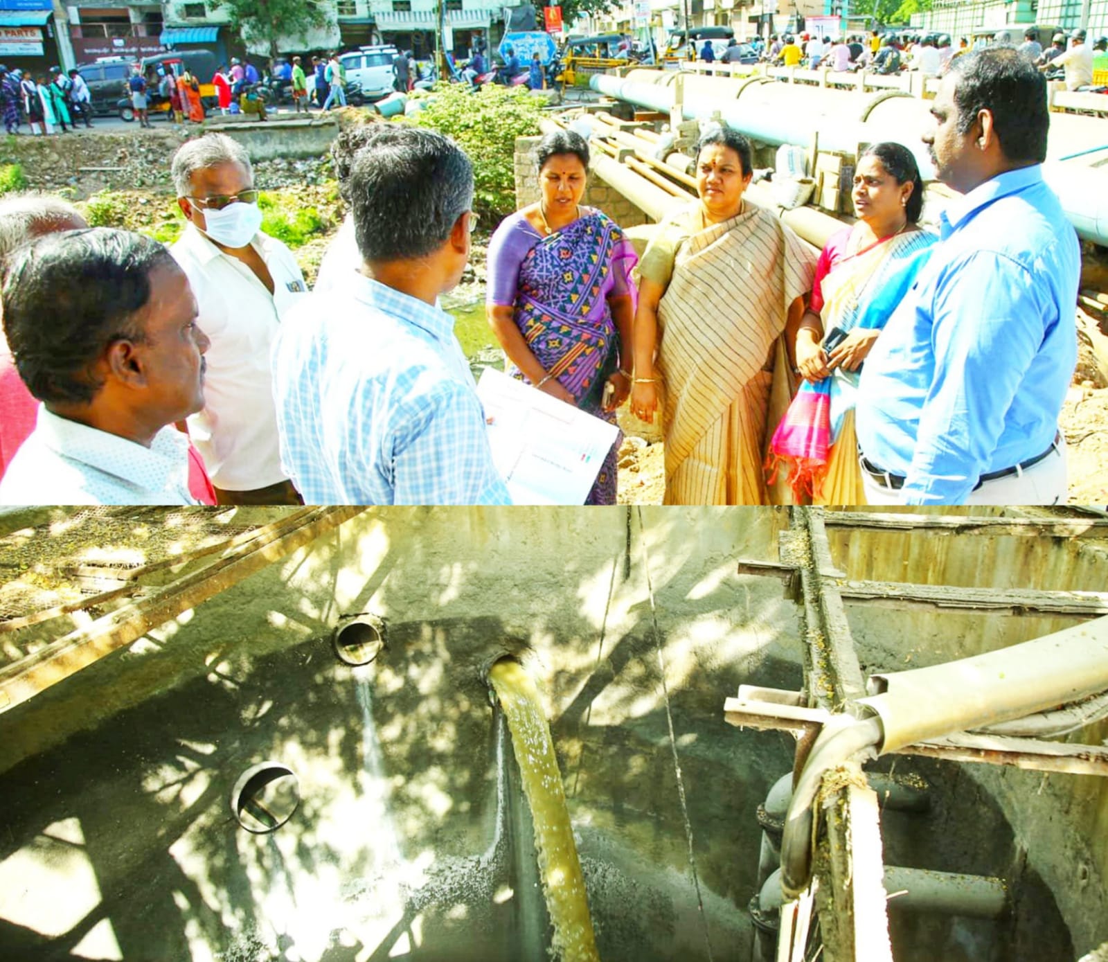 மதுரை மாநகராட்சி செல்லூர் பாலம் ஸ்டேசன் ரோடு பகுதியில் உள்ள தலைமை கழிவுநீரேற்று நிலையத்தில் மேயர் இந்திராணி, ஆணையர் தினேஷ்குமார், ஆய்வு செய்தனர்.