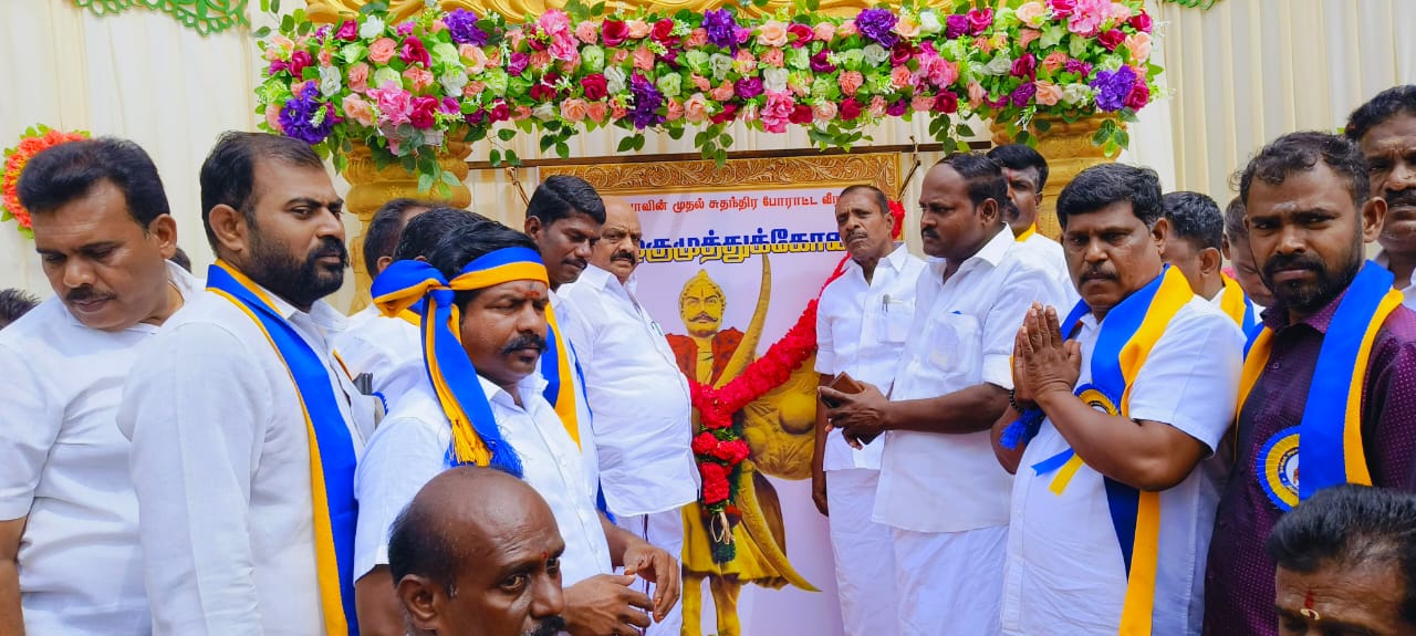 தமிழ்நாடு யாதவ மகா சபை சார்பில் திருப்பூர் மாநகராட்சி முன்பு சுதந்திர போராட்ட வீரர் திரு அழகு முத்துக்கோன் அவர்களின் 267 வது குருபூஜை விழாவினை முன்னிட்டு திருப்பூர் மாநகராட்சி முன்பு அலங்கரித்து வைக்கப்பட்டிருந்த அவரது திருவுருவப்படத்திற்கு மாலை அணிவித்து மலர் தூவி மரியாதை செலுத்தப்பட்டது