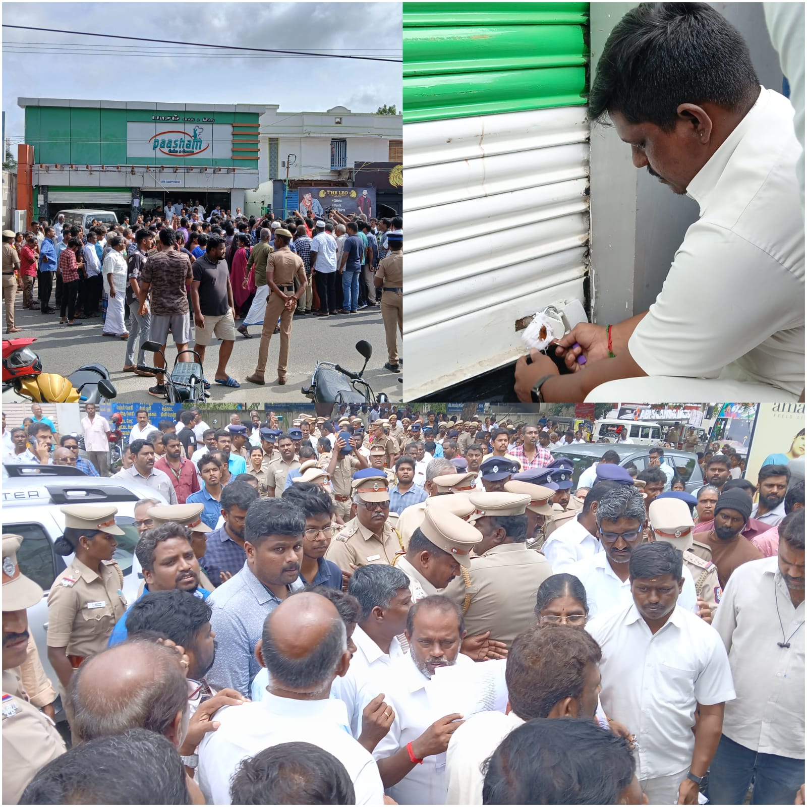 இதைத்தொடர்ந்து நேற்று கடைகளுக்கு சீல் வைக்க வந்த நகராட்சி பொறுப்பு ஆணையாளர் செந்தில்குமார் தலைமையிலான அதிகாரிகளை மகாலிங்கபுரம் பகுதி மக்கள் முற்றுகையிட்டனர். பின்னர் அங்கு வந்த நூற்றுக்கும் மேற்பட்ட போலீசார் அதிகாரியிடம் வாக்குவாதத்தில் ஈடுபட்ட கடை உரிமையாளர்களை அப்புறப்படுத்தினர்.