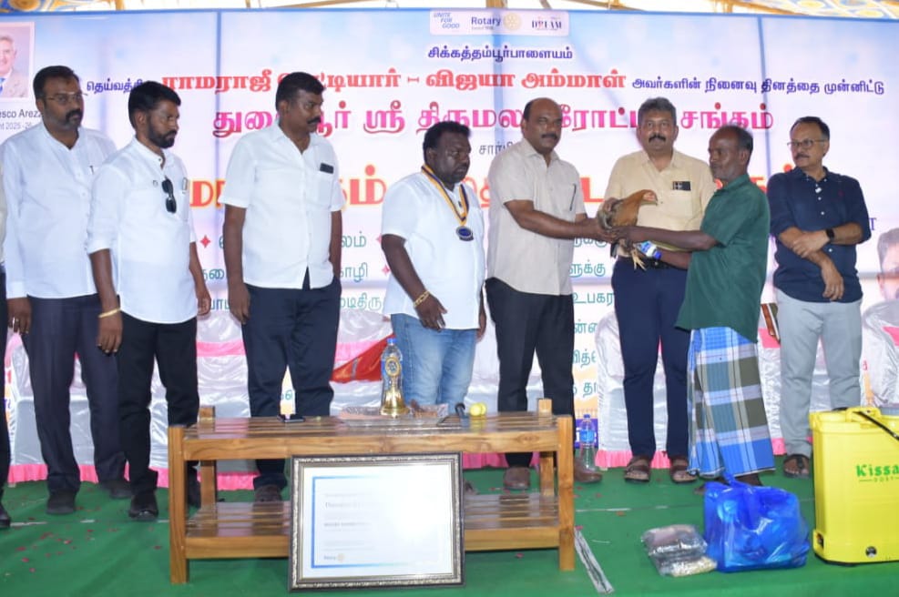 திருச்சி மாவட்டம் துறையூர் அருகே உள்ள சிக்கத்தம்பூர் பாளையம் ராமராஜீ ரெட்டியார் விஜயா அம்மாள் நினைவுத்திடலில்30-10-2025 அன்று சிக்கத்தம்பூர் பாளையம் தெய்வத்திரு ராமராஜீ ரெட்டியார்-விஜயா அம்மாள் நினைவு தினம் அனுசரிக்கப்பட்டது. இதைத்தொடர்ந்து துறையூர் ஸ்ரீ திருமலா ரோட்டரி சங்க சார்பில் சங்கத் தலைவர் ஆர்.சரவணன் தலைமையில் நலத்திட்ட உதவிகள் வழங்கும் விழா நடைபெற்றது.