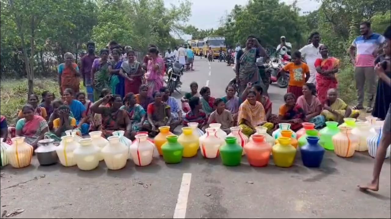 இது தொடர்பாக சம்பந்தப்பட்ட துறை அதிகாரியிடம் தெரிவித்தும் கடந்த ஒரு வார காலமாக குடிநீர் வராததால் ஆத்திரம் அடைந்த கிராம மக்கள் வழுதலைக்குடி கிராமத்தில் காலி குடங்களுடன் சாலையில் அமர்ந்து போராட்டத்தில் ஈடுபட்டனர்.