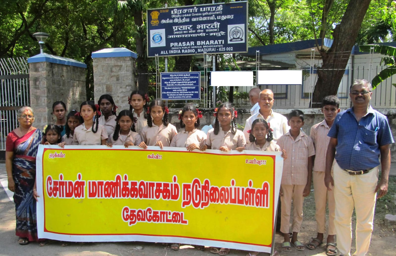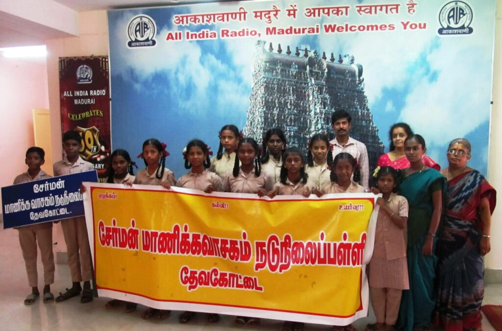 மதுரை – சிவகங்கை மாவட்டம் தேவகோட்டை சேர்மன் மாணிக்க வாசகம் நடுநிலைப் பள்ளி மாணவ,மாணவியர் பங்கேற்கும் பல்சுவை நிகழ்ச்சிகள் அகில இந்திய வானொலி நிலையமான மதுரை வானொலியில் ஒலிபதிவு செய்யப்பட்டது.