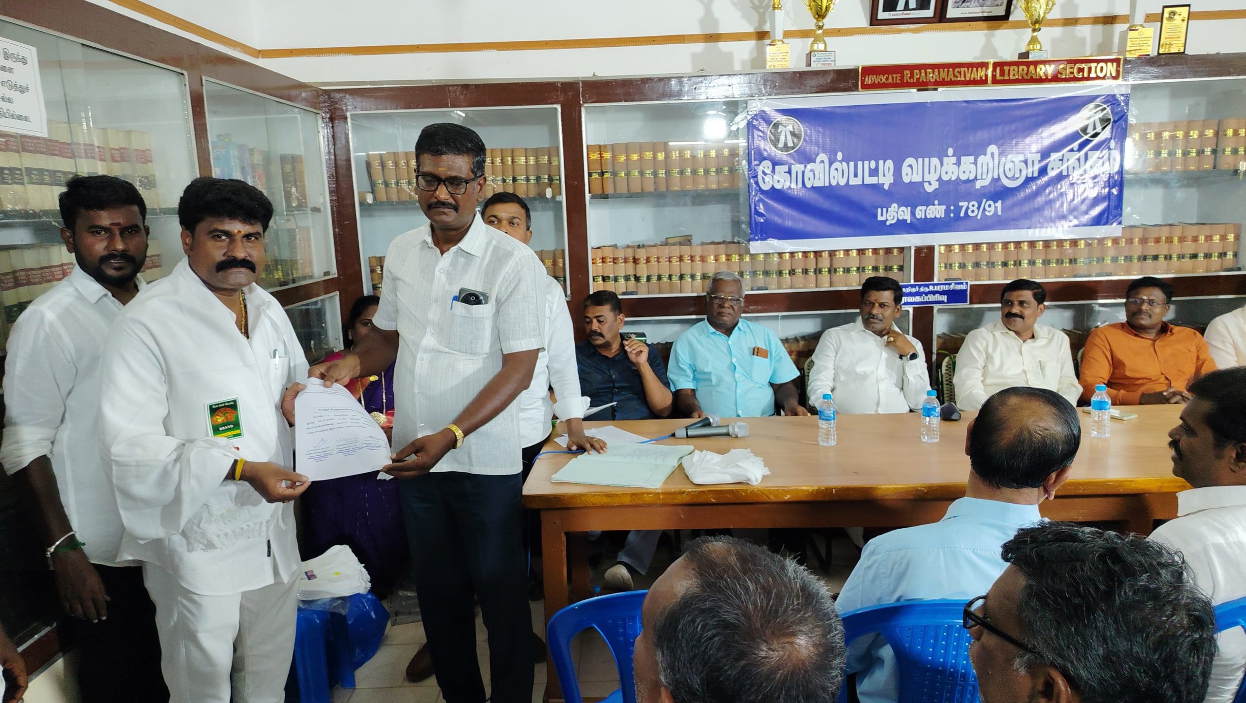கோவில்பட்டி வழக்கறிஞர் சங்கத்தின் 2025-26-ம் ஆண்டுக்கான புதிய நிர்வாகிகள் பதவியேற்பு விழா நடந்தது.