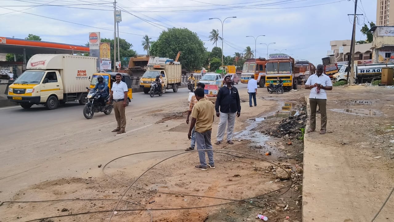 மாதவரம் ஆந்திரா பஸ் நிலையம் அருகே ஜி.என்.டி சாலையில் இடையே செல்லும் உயர்மின்னழுத்த மின்சார கேபிள் நேற்று காலை திடீரென அறுந்து விழுந்தது. முன்னதாக தீப்பொறிகள் ஏற்பட்டதால் அதிர்ஷ்டவசமாக அவ்வழியே சென்ற வாகனங்கள் ஆங்காங்கே தடுத்து நிறுத்தப்பட்டன. உடனடியாக மின்சார வாரியத்திற்கு தகவல் தரப்பட்டது. சம்பவ இடம் விரைந்த மின்வாரிய ஊழியர்கள் அறுந்து கிடந்த கேபிளை பத்திரமாக அகற்றினர்.