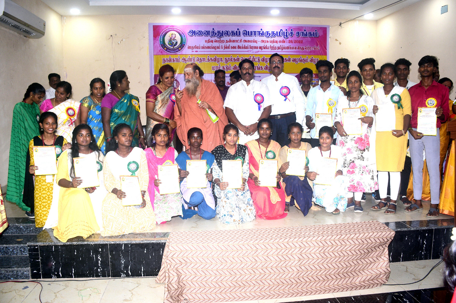 அனைத்துலகப் பொங்கு தமிழ்ச்சங்கம் -தமிழ்நாடு அதன் நான்காம் ஆண்டு தொடக்க விழா நூல்கள் வெளியீட்டு விழா, விருதுகள் வழங்கும் விழா, மரக்கன்றுகள் நடும் விழா,கவியரங்கவிழா, என்னும் ஐம்பெரும் விழா விழுப்புரம் ஒரத்தூர் சுவாமி விவேகானந்தா கலை மற்றும் அறிவியல் கல்லூரியில் நடைபெற்றது.