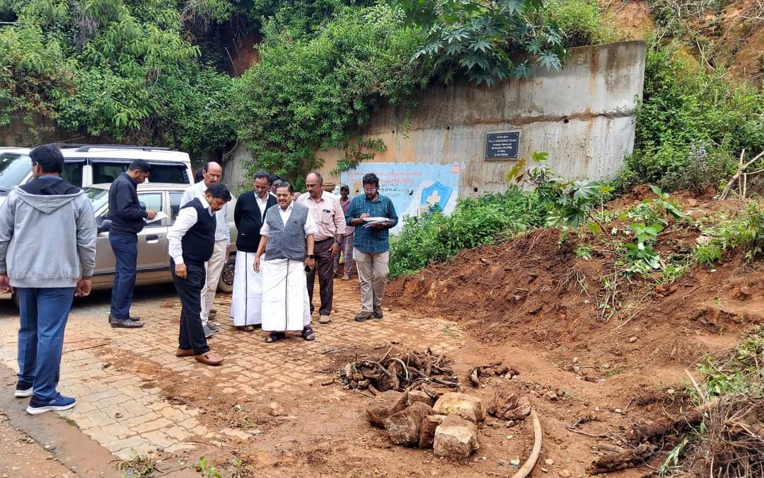 தமிழக முதல்வர் மு.க.ஸ்டாலின் போர்க்கால அடிப்படையில் சீர்படுத்த அமைச்சர்களுக்கு அறிவுறுத்தியதின் பேரில் குன்னூர் சட்டமன்ற உறுப்பினர் அலுவலகம் அருகே நிலச்சரிவு ஏற்பட்ட பகுதியை தமிழக சுற்றுலாத்துறை அமைச்சர் . க. ராமச்சந்திரன் மற்றும் அரசு அதிகாரிகள், தி.மு.க நிர்வாகிகள் நேரில் பார்வையிட்டனர்.