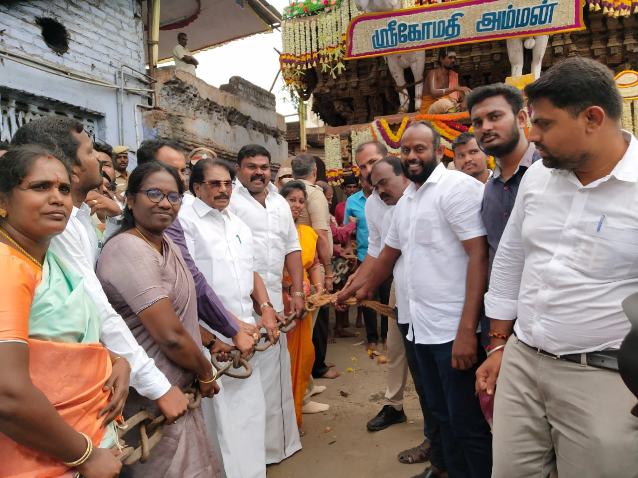 இதனை முன்னிட்டு நேற்று காலை 6:00 மணிக்கு ஸ்ரீ கோமதி அம்பாள் ரதத்திற்கு எழுந்தருளும் நிகழ்ச்சி நடைபெற்றது.