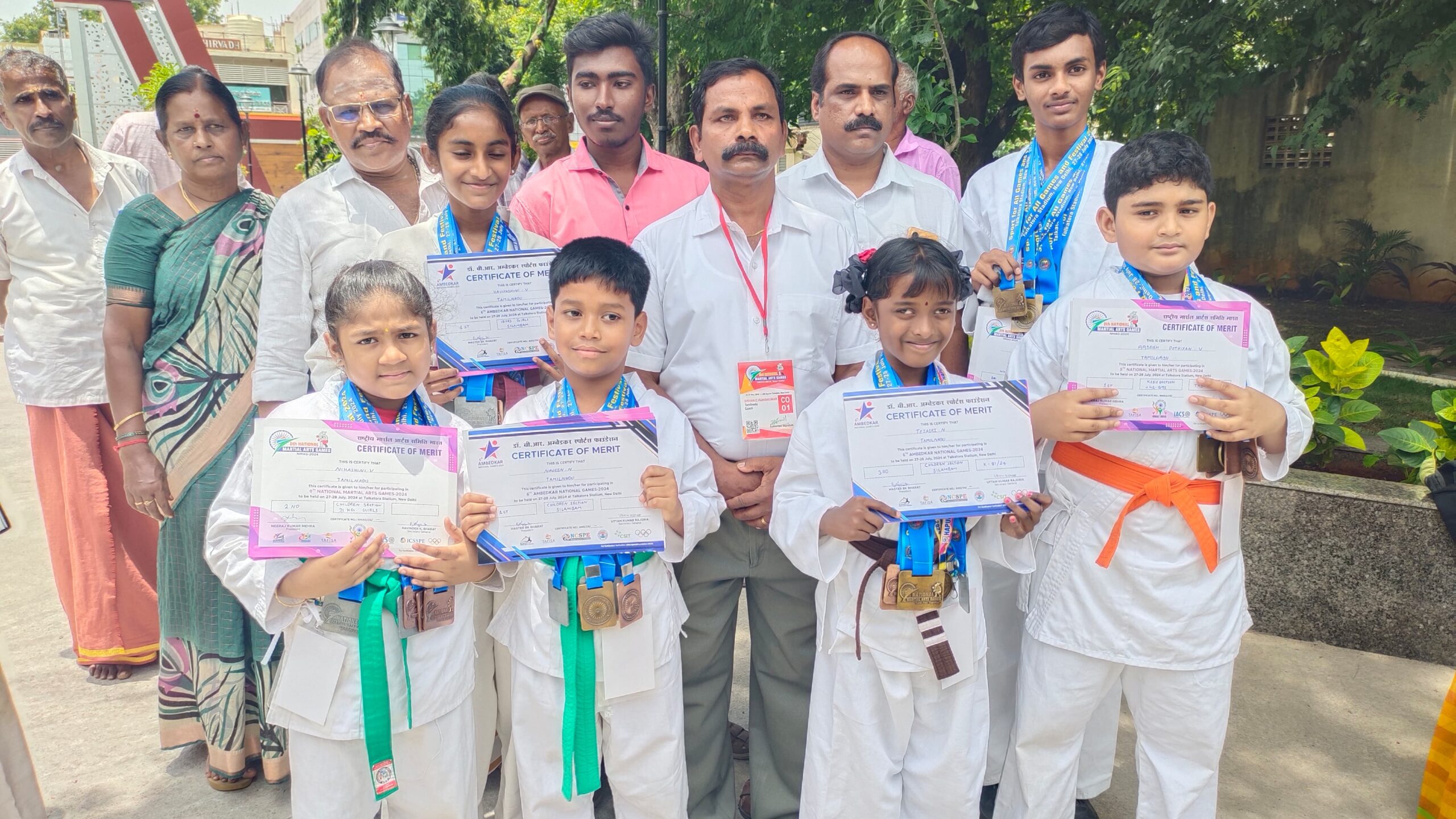 தலைநகர் டெல்லியில் ஜூலை மாதம் 27, 28-ல் 8 வது நேஷனல் மார்ஷியல் ஆர்ட்ஸ் கேம்ஸ் NMAG-2024 நடத்திய கராத்தே, சிலம்பம், டேக்வாண்டோ ஆகிய போட்டிகளில் தமிழ்நாடு கோவையில் சென்ஷிகான் மார்ஷியல் ஆர்ட்ஸ் அகாடமி சோட்டகான் கராத்தே பயிற்சியாளர்கள் விஜயகுமார், ஜஸ்டின் ராஜ் , அமல்ராஜ், விஜயகுமார்,செல்லபாண்டியன், நடராஜ்,கதிரவன்,ஆகியோரிடம் பயிற்சி பெற்ற மாணவர்கள் ஆதிஷ் பொதியன், அஸ்வின், கவியாழனி நவீன்,அபிநந்தன்,நிகாஷினி தேஜாஸ்ரீ ஆகியோர் தேசிய அளவிலான போட்டியில் தங்கம் மற்றும் வெள்ளி பத்தங்களை பெற்றனர்,
