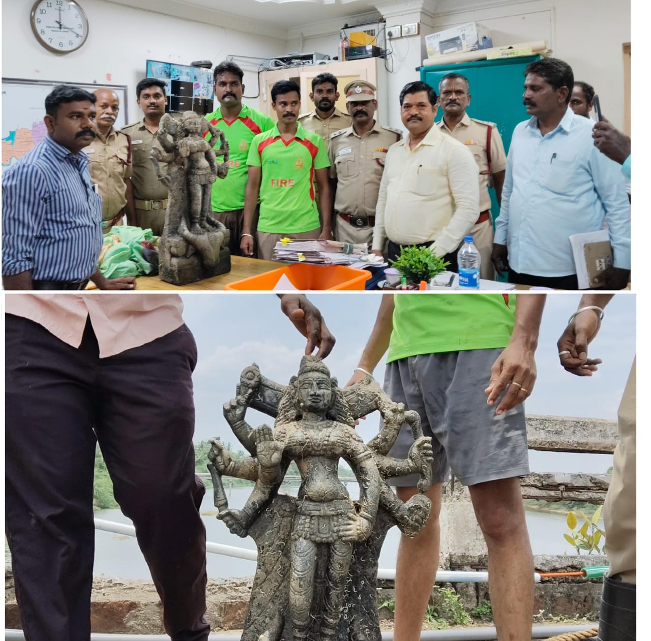 சிலை எடுக்கும் சம்பவத்தை காண பொதுமக்கள் பாலம் நெடுகிலும் திரண்டு இருந்தனர் சிலையை பற்றி அதிகாரிகள் தெரிவிக்கும் பொழுது சுமார் 500 ஆண்டுகால பழமை வாய்ந்த சிலையாக இருக்கும் என தெரிவிக்கின்றனர்