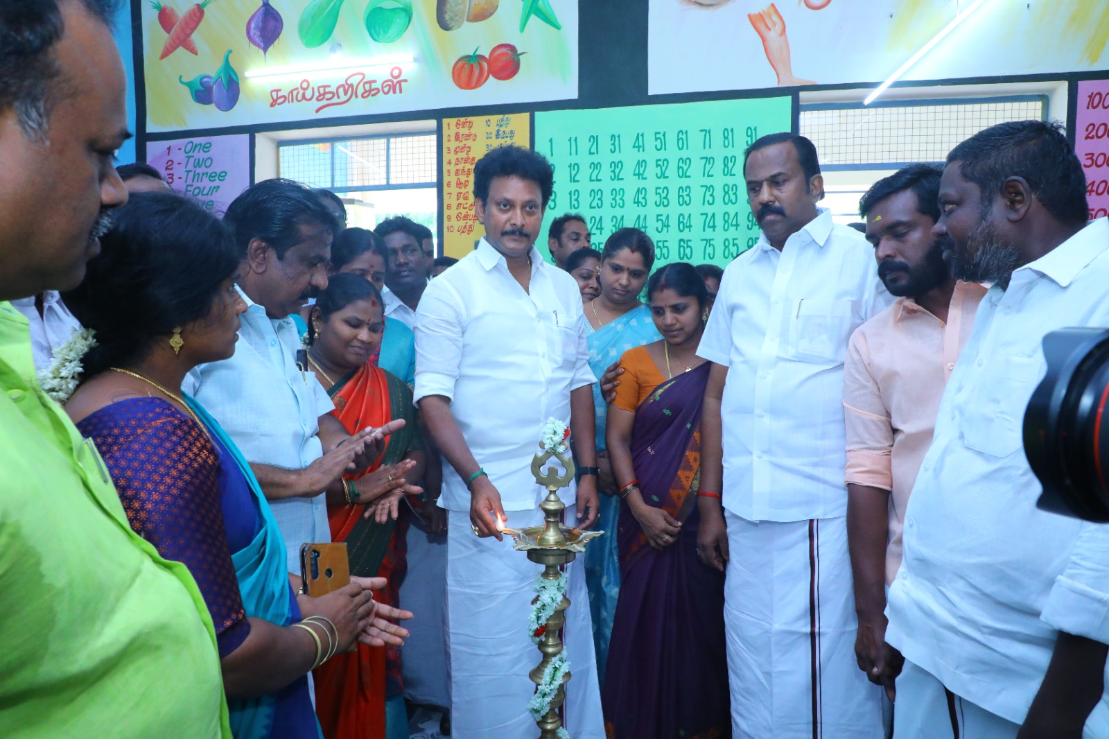 தஞ்சாவூர் மாவட்டம் பாபநாசம் ஊராட்சி ஒன்றிய நடுநிலைப் பள்ளியில் குழந்தைகள் நேய பள்ளி உட்கட்டமைப்பு மேம்பாடு திட்டம் 2022 2023 மதிப்பீடு ரூ1 கோடியே 24 லட்சத்து 40 ஆயிரம் மதிப்பீட்டில் 8 வகுப்பறை புதிய பள்ளி கட்டிடம் திறப்பு விழா நடைபெற்றது