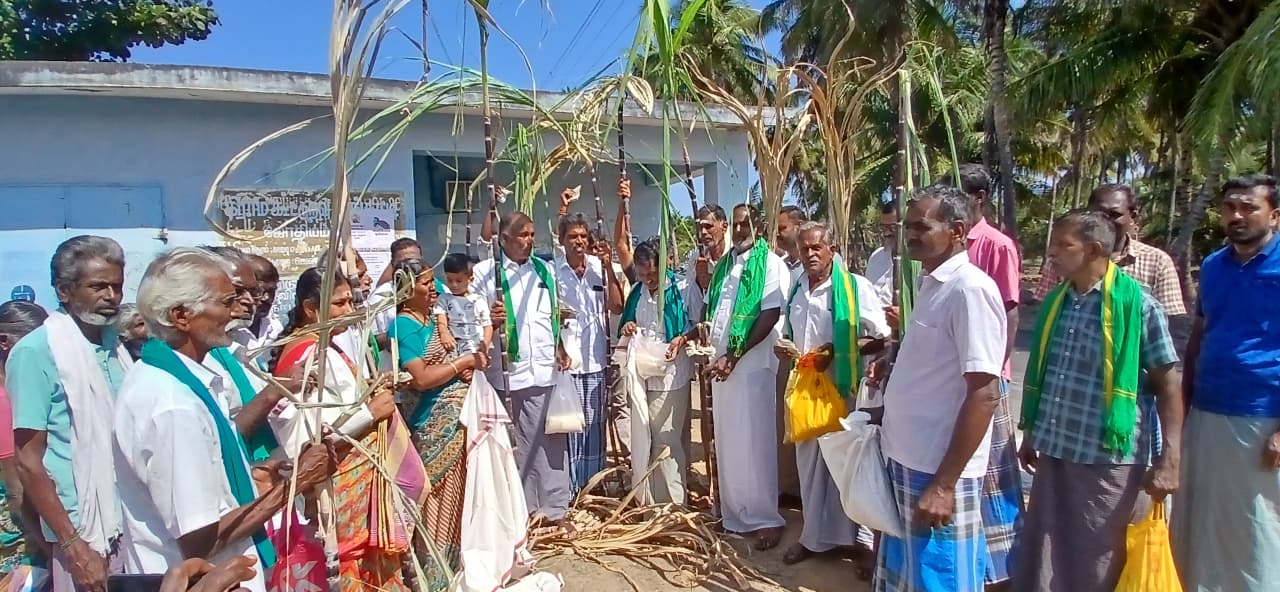 இதன் ஒரு பகுதியாக, தமிழக அரசால் பொங்கல் பண்டிகையை முன்னிட்டு வழங்கப்பட்ட ரூ.3,000 ரொக்க உதவி, பச்சரிசி, கரும்பு, சர்க்கரை உள்ளிட்ட பொருட்களை போராட்டக்காரர்கள் நியாய விலை கடை முன்பே திருப்பி ஒப்படைத்தனர்.