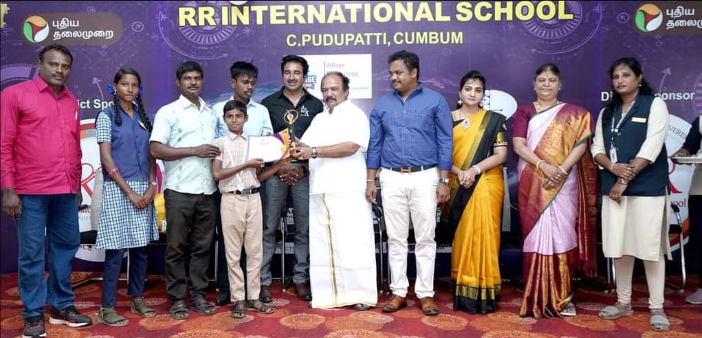 தேனி மாவட்டம் கம்பம் அருகே உள்ள கம்பம் புதுப்பட்டியில் செயல்பட்டு வரும் சர்வதேச பள்ளியான ஆர்ஆர் இன்டர்நேஷனல் பள்ளியில் நடைபெற்ற வீட்டுக்கு ஒரு விஞ்ஞானி நிகழ்ச்சியில் பங்கேற்று வெற்றி பெற்ற மாணவிகளுக்கு கல்வி தந்தை பள்ளியின் அதிபர் கல்வித் தந்தை ஆர் ராஜாங்கம் சிறப்பு பரிசு கேடயங்கள் வழங்கி ஊக்கப்படுத்தினார்