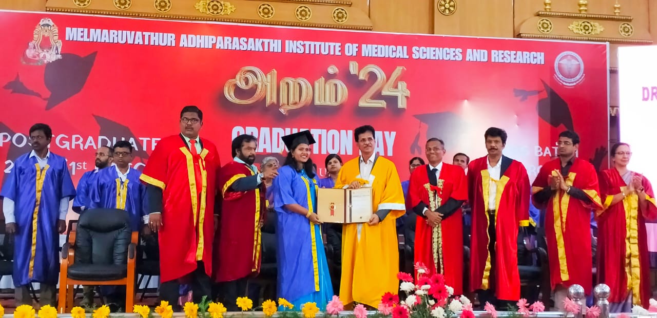 செங்கல்பட்டு மாவட்டம் மேல்மருவத்தூர் ஆதிபராசக்தி மருத்துவக்கல்லூரி மற்றும் ஆராய்ச்சி நிலையம் நடத்தும் அறம் 24 பட்டமளிப்பு விழா நேற்று மேல்மருவத்தூர் அருள்திரு அடிகளார் திருமண மண்டபத்தில் நடைபெற்றது.
