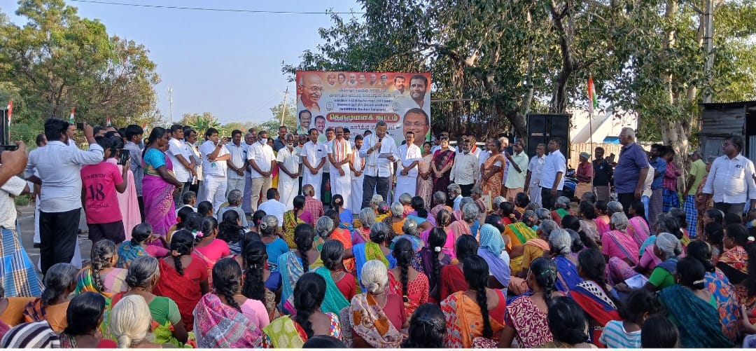 திருப்பூர் மாவட்டம் தாராபுரம் அருகே வரப்பாளையம் கிராமத்தில் திருப்பூர் தெற்கு மாவட்டம் தாராபுரம் வட்டார காங்கிரஸ் கமிட்டி சார்பில் மகாத்மா காந்தி தேசிய ஊரக வேலை உறுதித் திட்டத்தை காப்போம் என்பதை வலியுறுத்தி தெருமுனைப் பிரச்சாரம் கூட்டம் நடைபெற்றது.