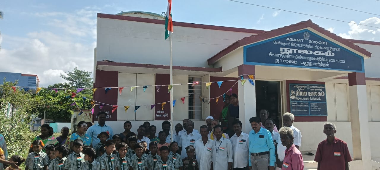 தேனி மாவட்டம் பெரியகுளம் கீழவடகரை ஊர் புற நூலகத்தில் கீழவடகரை ஊராட்சி மன்ற தலைவர் செல்வராணி செல்வராஜ் தேசிய கொடியை ஏற்றி வைத்து சிறப்புரையாற்றினார் வாசகர் வட்ட தலைவர் அ மோகன் தலைமை வகித்தார் புரவலர்கள் ஜெயராஜ் இப்ராஹிம் பாஷா முருகன் மணி பூசாரி ஆகியோர் முன்னிலை வகித்தனர் நூலகர் ராஜகோபால் வரவேற்புரையாற்றினார்