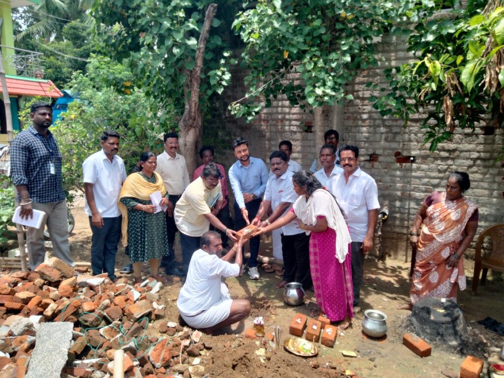 அதனைத் தொடர்ந்து கடந்த 15 ஆம் தேதி கலைஞர் கனவு இல்லம் திட்டத்தில் பணி ஆணை வழங்கப்பட்டது. பணி ஆணை பெற்ற ராம்பாக்கம் பகுதியில் உள்ள வேல்விழி சங்கர் என்பவரின் வீட்டுக்கு நேரடியாக சென்று பூமி பூஜை செய்து பணியினை துவக்கி வைத்தனர் . நிகழ்ச்சியில் பொறியாளர்கள் மற்றும் பல்வேறு துறை சார்ந்த அரசு அலுவலர்கள் ஊழியர்கள் பலர் கலந்து கொண்டனர்.