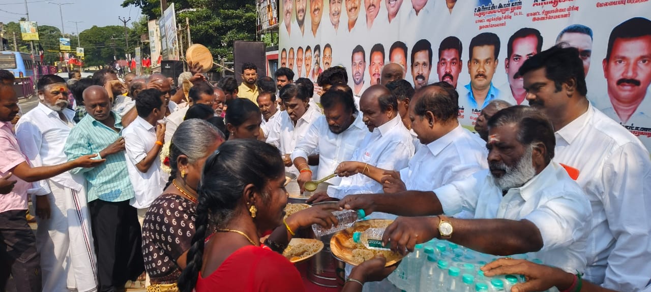 முன்னாள் முதல்வர் எம்ஜிஆரின் 109ஆம் ஆண்டு பிறந்த நாளை முன்னிட்டு அவரது சிலைக்கு மாலை அணிவித்து அன்னதானம் வழங்கப்பட்டது.