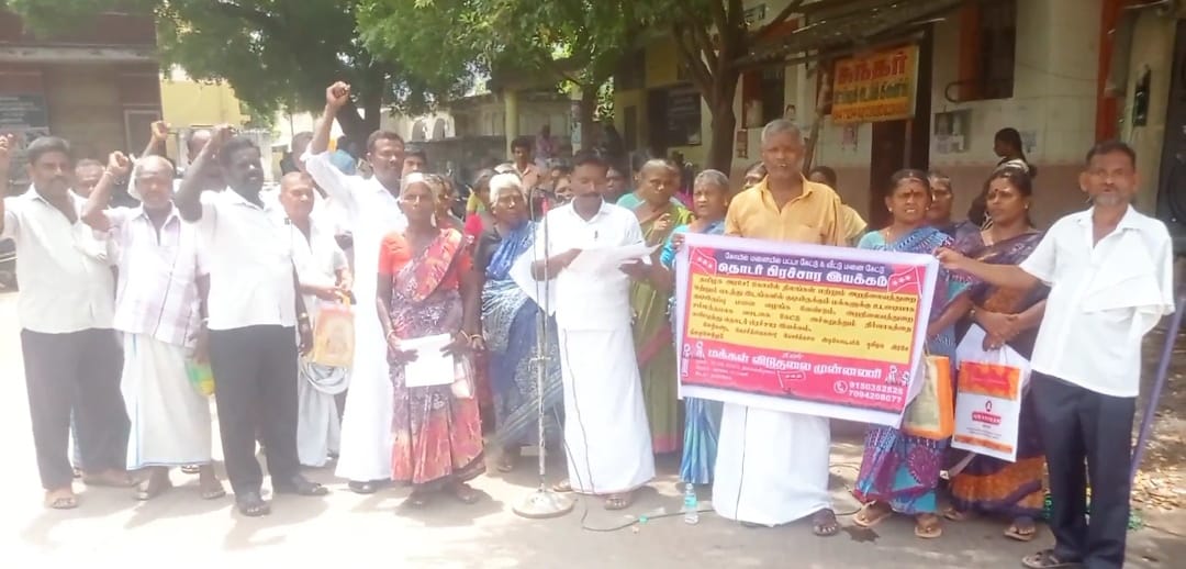 கும்பகோணம் அருகே தாராசுரத்தில் மக்கள் முன்னணி விடுதலை சார்பில் கோயில் மனையில் பட்டா மற்றும் வீட்டு மனை கேட்டு தொடர் பிரச்சார இயக்கம் தொடங்கியது.