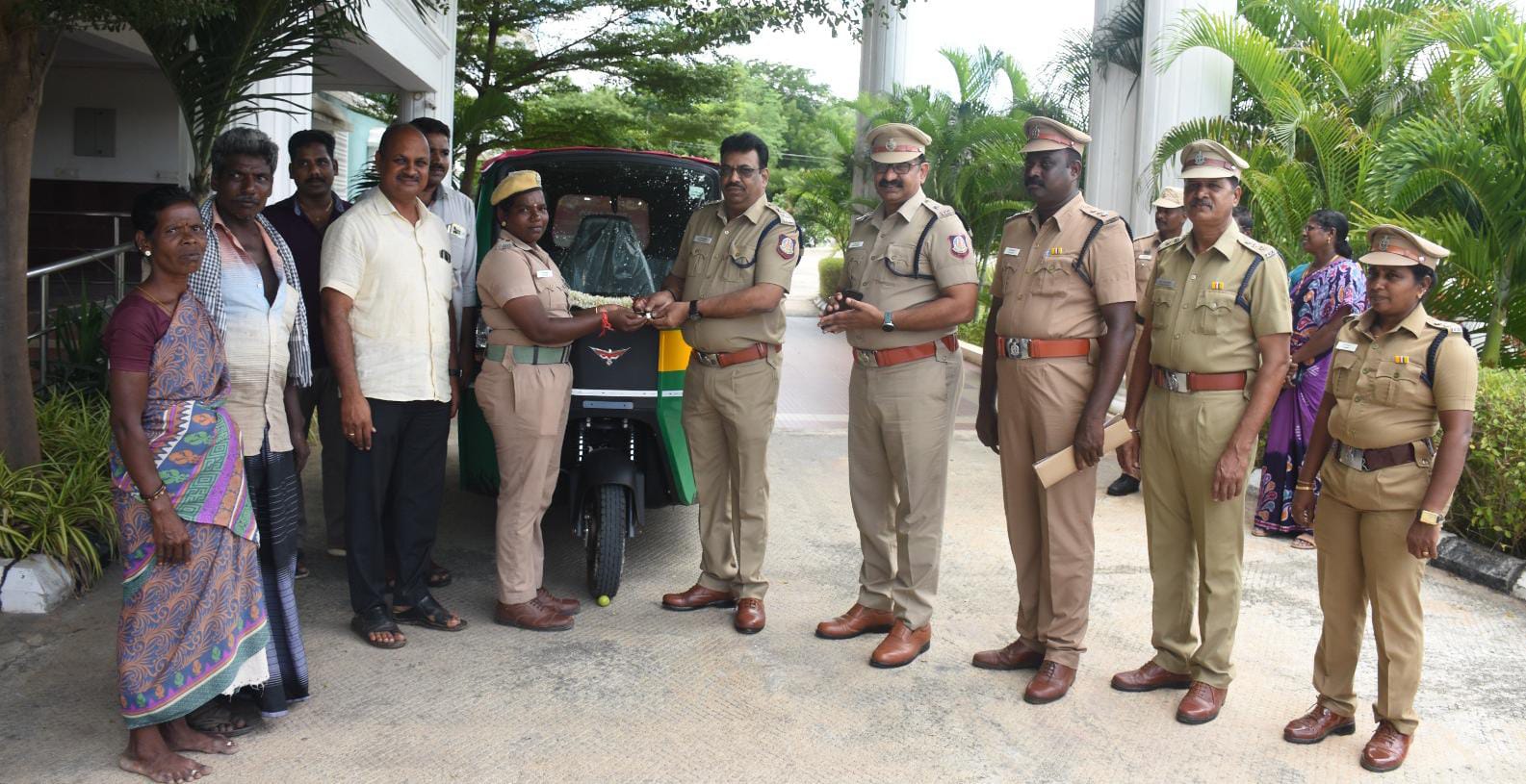 அரியலூர் மாவட்ட காவல் அலுவலகத்தில் அரியலூர் மாவட்ட காவல் கண்காணிப்பாளர் .ச.செல்வராஜ் ஊர்க்காவல் படையில் பணிபுரிந்து வரும் பிரியங்கா என்பவரின் வாழ்வாதாரத்தை உயர்த்தும் பொருட்டு இலவசமாக மின் ஆட்டோ வழங்கினார்கள்.