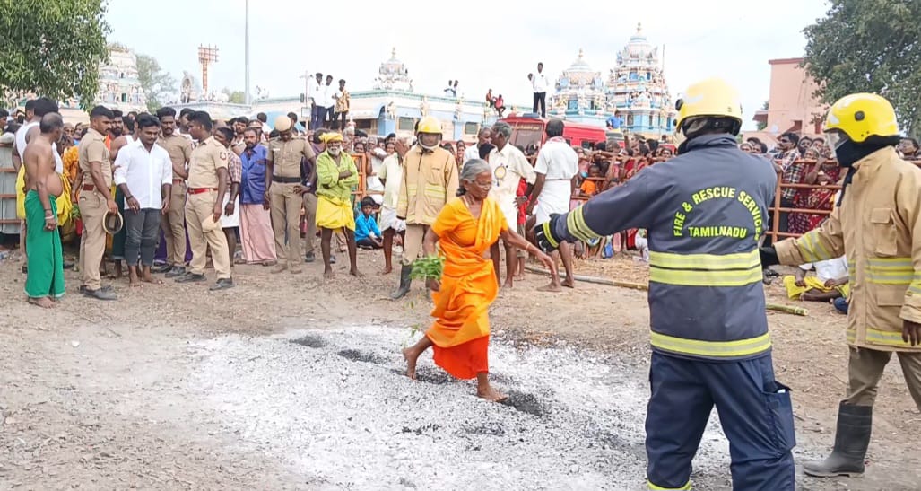 பின்பு 1000-க்கும் மேற்பட்ட பக்தர்கள் தீ மிதித்து தங்களது நேர்த்திக்கடன்களை செலுத்தினார்கள்.