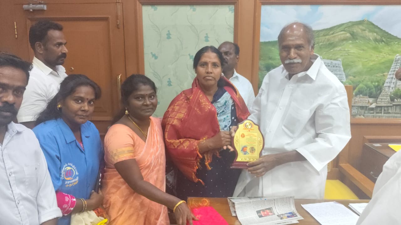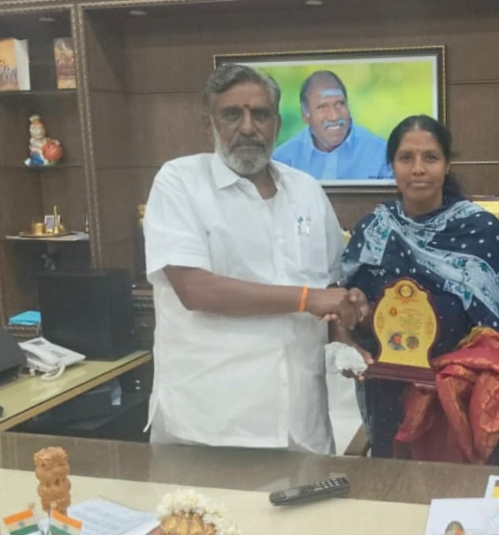நன்றியுடன் விருதை பெற்று பெற்றுக்கொண்ட பெண் காவலர் ஹேமமாலினி முதல்வர் ரங்கசாமி அவர்களிடம் ஆசியும் பெற்றார். அதனைத் தொடர்ந்து வேளாண் துறை அமைச்சர் தேனி ஜெயக்குமாரிடமும் விருதை காண்பித்து ஆசி பெற்றார்.