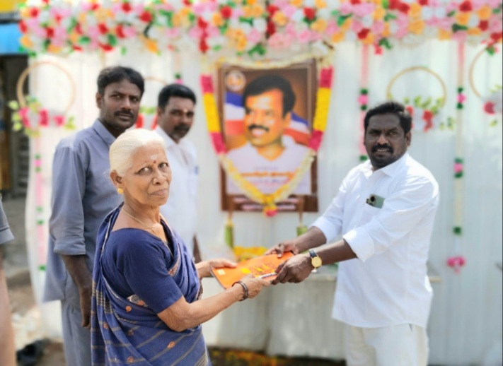 பின்னர் பெண்களுக்கு இலவச சேலைகளும் ஏழை மக்களுக்கு அன்னதானமும் வழங்கினார். மாவட்ட துணை செயலாளர் அருள்பிரகாஷ், தொகுதி செயலாளர் நாவப்பன், தொகுதி பொருளாளர் அய்யனார், இளைஞர் அணி செயளாலர் தேவநாதன் உட்பட திரளாக பலர் கலந்து கொண்டனர்