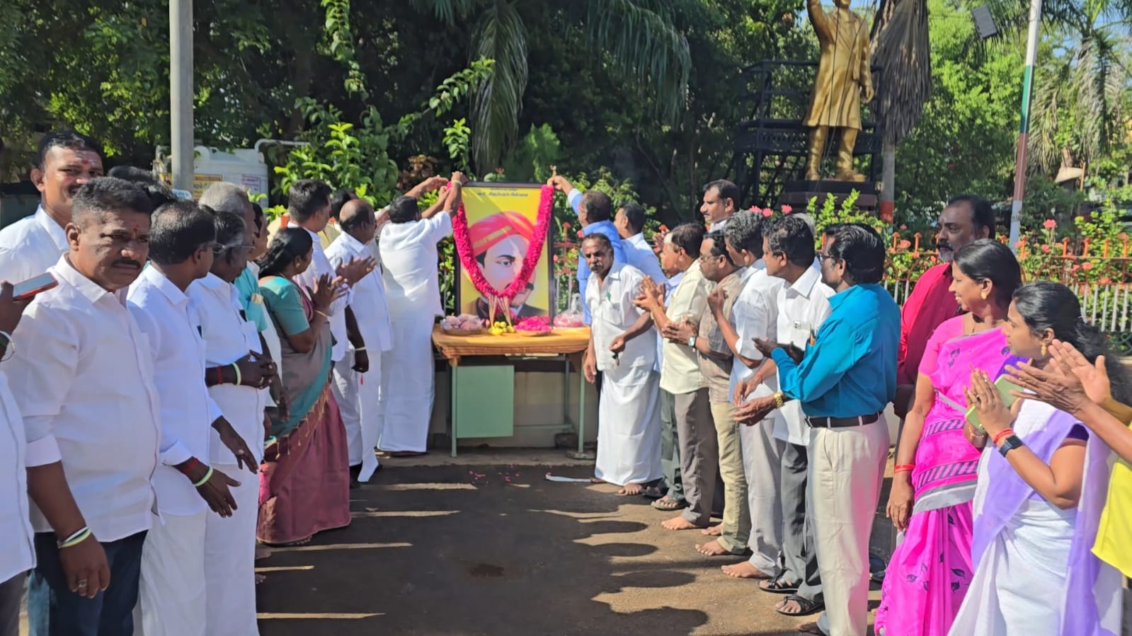 பின்னர் கல்லூரி சாலை ராஜீவ்காந்தி சிலை அருகே வ.உ.சிதம்பரனாரின் உருவப் படத்திற்கு வ.உ.சி எழுச்சி பேரவை நிறுவனர் சரவணன் ஏற்பாட்டில் பேரவை தலைவர் பாலசுப்பிரமணியன் தலைமையில்,செயலாளர் முத்துக்குமார்,பொருளாள்ர் விஜயன் முன்னிலையில் அனைத்து கட்சியினர்,பொதுமக்கள் மலர்தூவி வணங்கினர்.